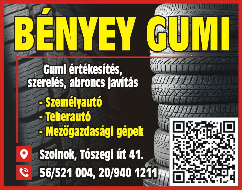 Látogasson el hozzánk, és tapasztalja meg a Bényey Gumi gyors, megbízható és szakértői szerviz szolgáltatásait Szolnokon. Az Ön biztonsága nálunk kezdődik, legyen szó abroncs vásárlásról, szerelésről vagy javításról.