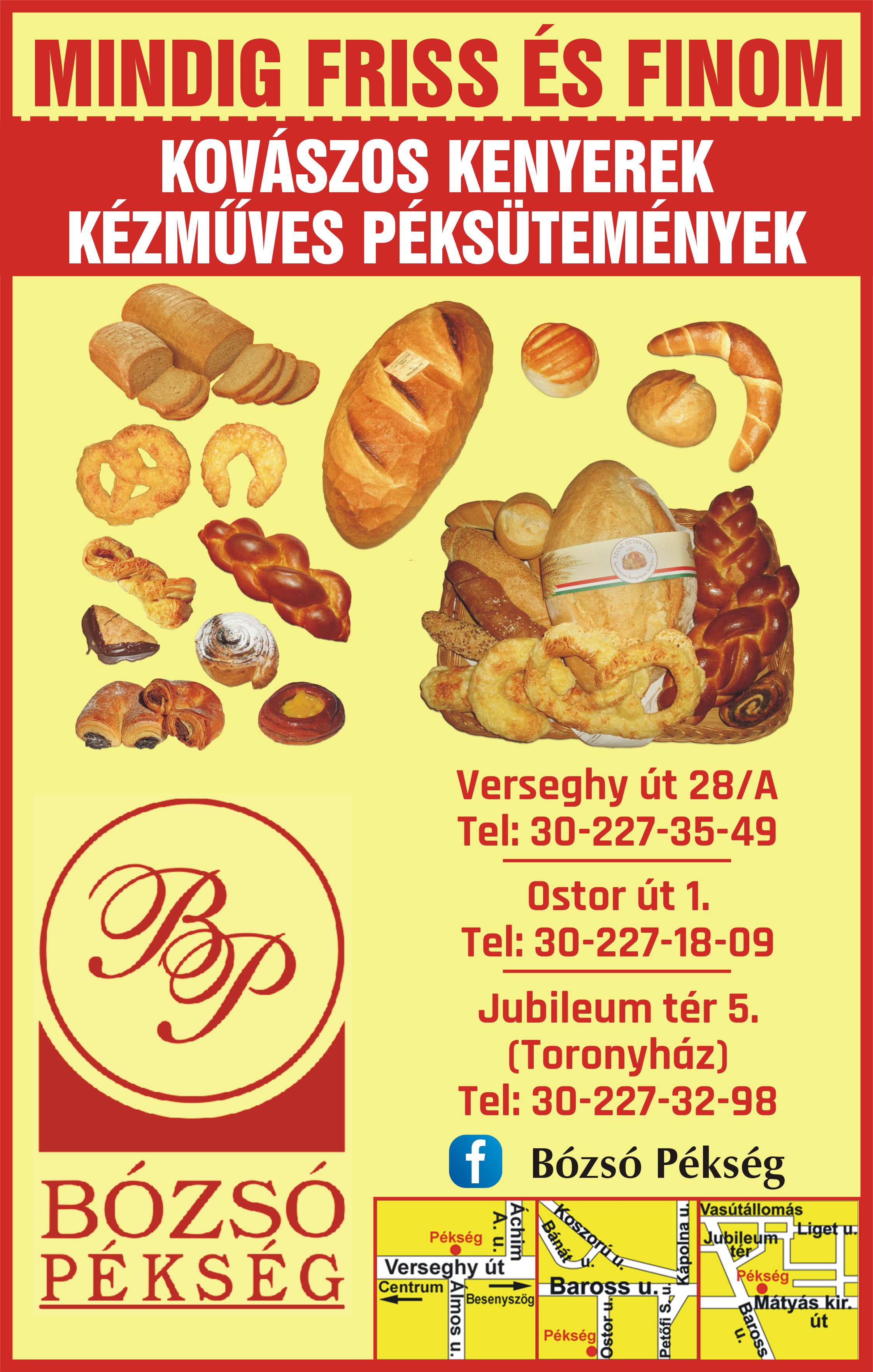 A Bózsó Pékség büszke arra, hogy széles választékkal szolgálja ki vásárlóit. Kézműves pékáruink frissen, naponta több alkalommal készülnek, így mindig a legjobb minőséget kínáljuk: