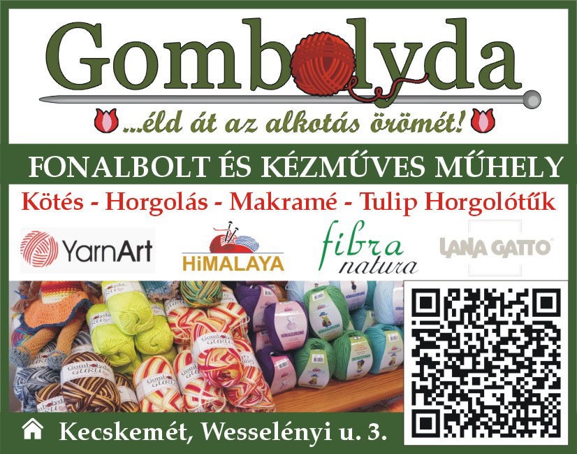 Üdvözlünk a Gombolyda Fonalboltban Kecskeméten! Ha szeretsz kötni, horgolni vagy kézműveskedni, nálunk minden alapanyagot megtalálsz, amire szükséged lehet az alkotáshoz. Minőségi fonalak, Tulip horgolótűk, makramé alapanyagok és rengeteg kreatív ötlet vár rád, hogy a kézimunka igazi élménnyé váljon.