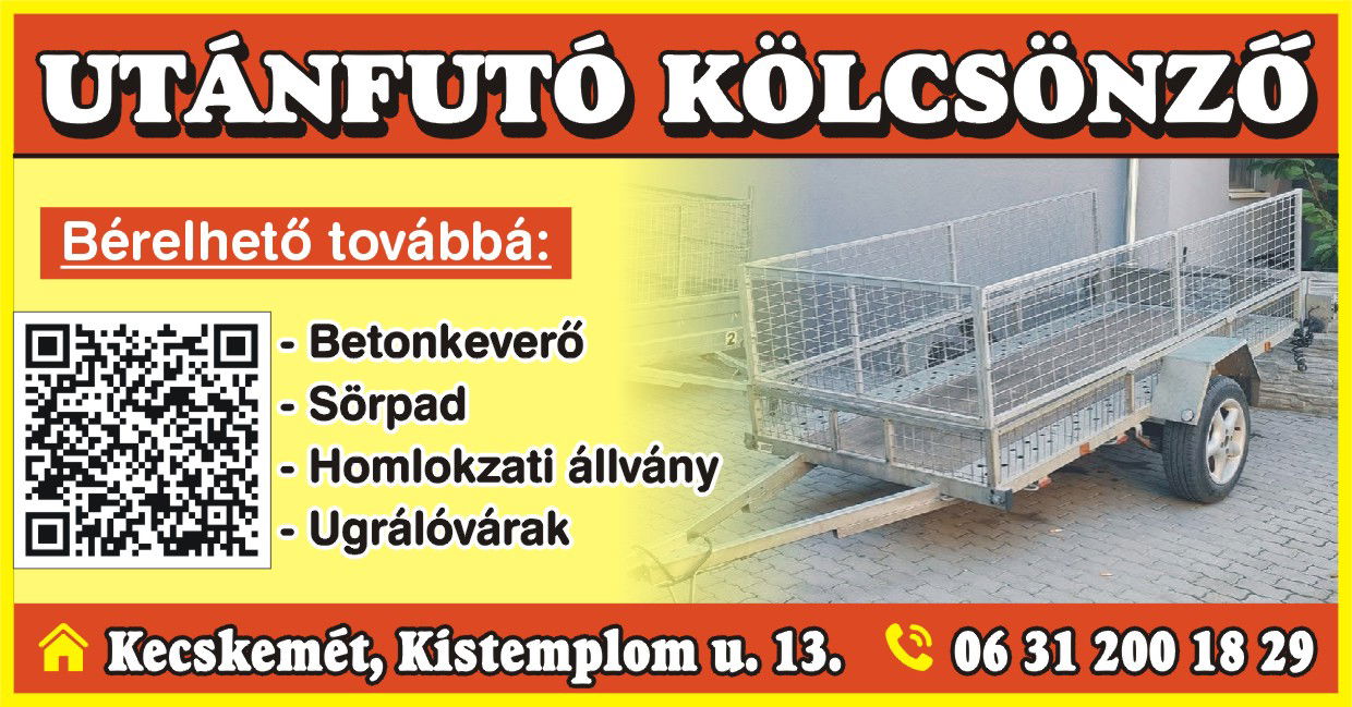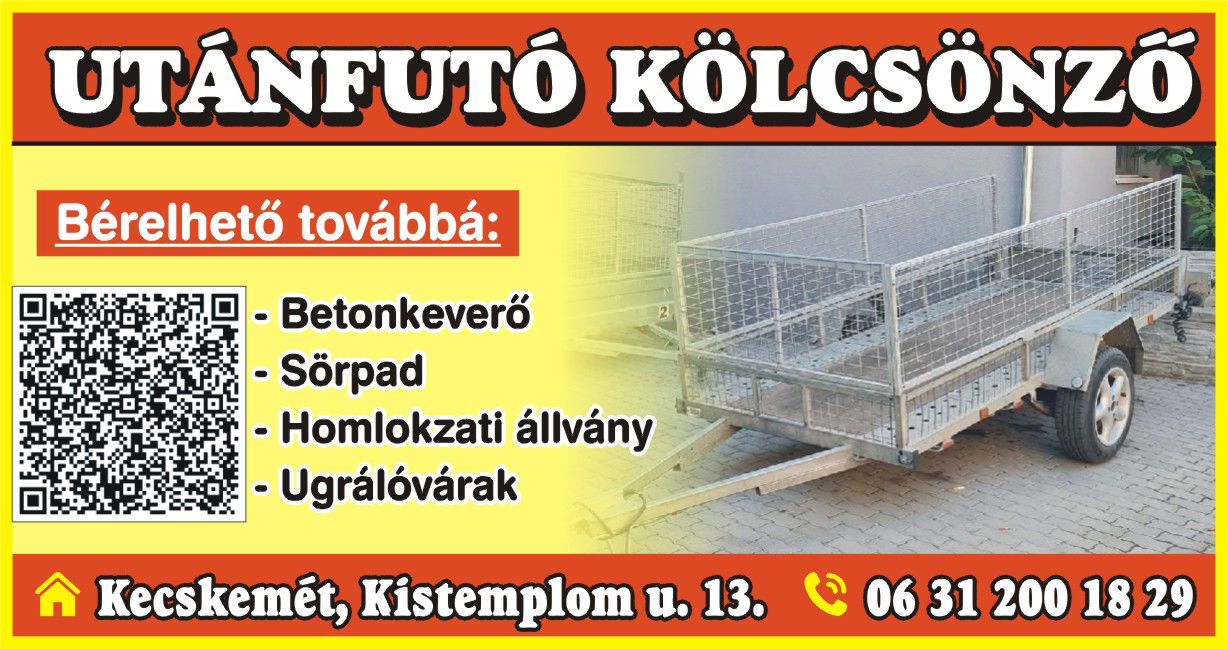 Utánfutó Kölcsönző Kecskemét – minden eszköz egy helyen, megfizethető áron.